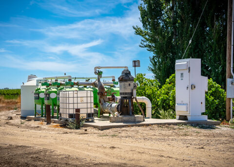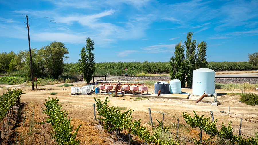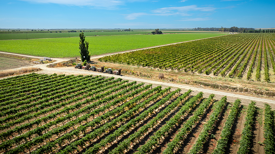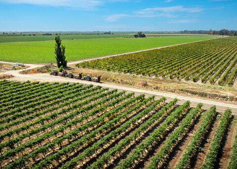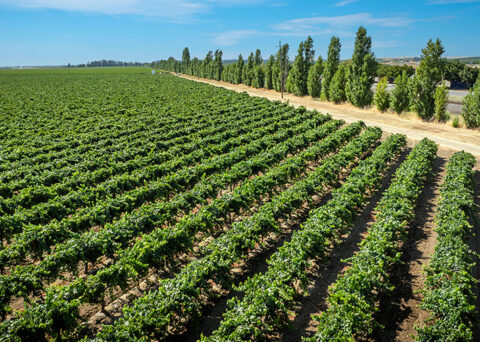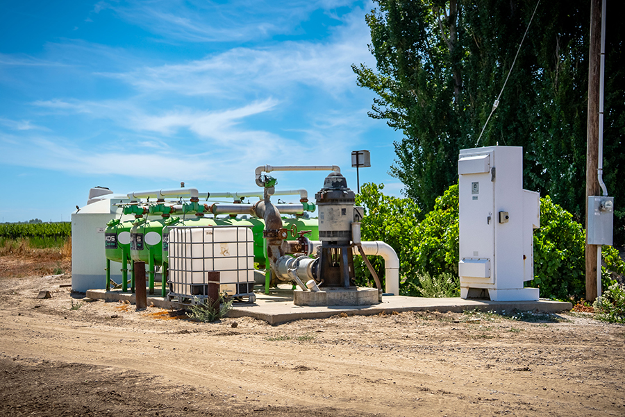 • Multiple-source irrigation water is currently supplied to the Property via surface water deliveries from the Dunnigan Water District, with supplemental water provided via three, operating agricultural deep wells located on-site producing a combined 1,719 +/- gallons per minute (per 2023 pump tests). Irrigation water is distributed throughout the Property’s vineyard blocks via booster pumps and filter stations, through main and submain pipelines. The Property is irrigated via a dual-line drip system.